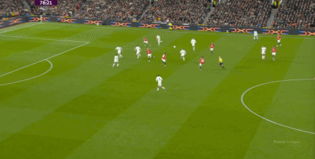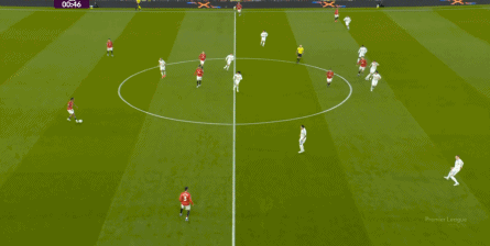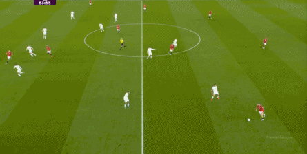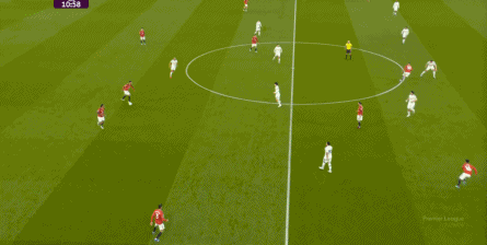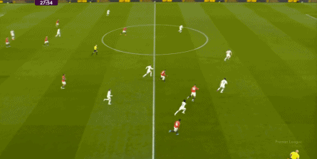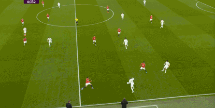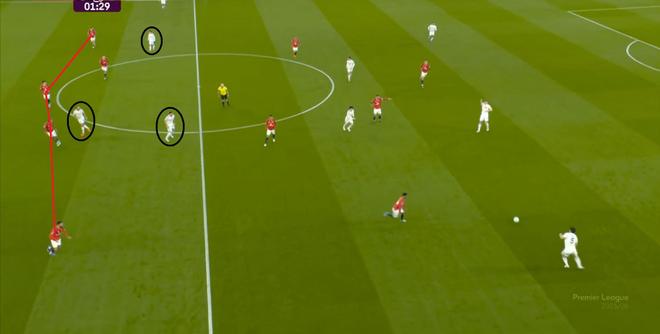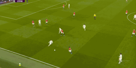 防守阶段,曼联先失去层次,后失去宽度,让利兹联还是完成了起脚,靠卢克-肖的解围才清除掉风险,然后才是曼联的反击。