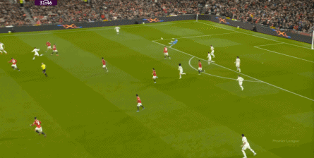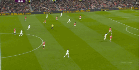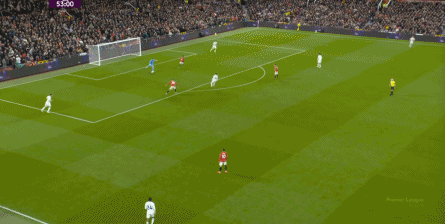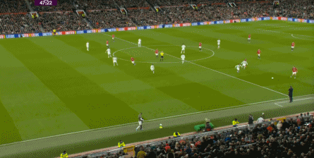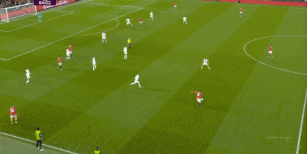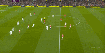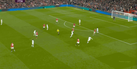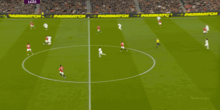 点燃了主场的气氛之后,曼联的表现有了一些提振,从而打出了一段连续的转换进攻: