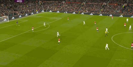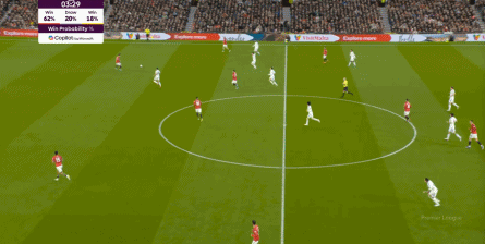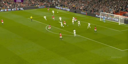 这是难免的事情,毕竟在中卫线上,约罗和利桑德罗-马丁内斯就始终找不到办法来限制勒温的发挥,这一点就让利兹联总有机会把攻势连接到两侧,进而打击曼联的防守宽度问题: